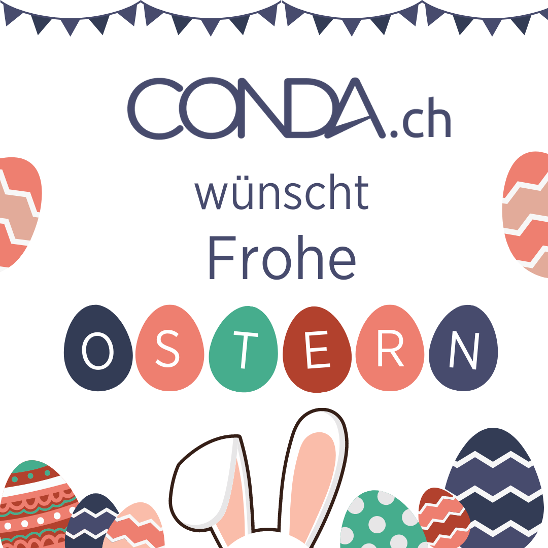 Das gesamte CONDA.ch-Team wünscht Dir und Deinen Liebsten Frohe Ostern und ein paar erholsame frühlingshafte Feiertage!