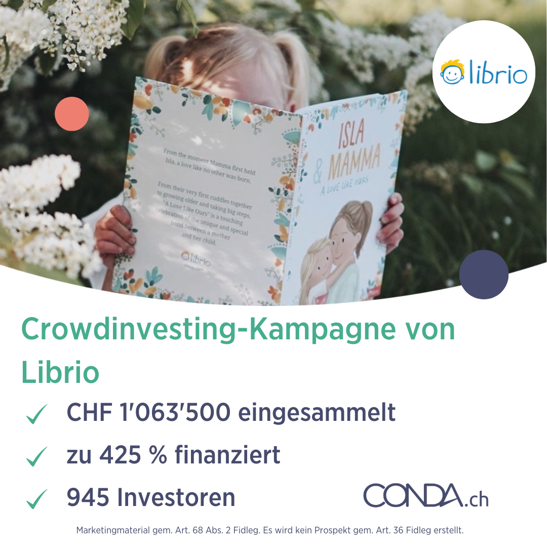 Für die gelungene Zusammenarbeit und das entgegen gebrachte Vertrauen bedankt sich das CONDA.ch Team aufrichtig! Wir sind stolz darauf, Librio bei ihrer Finanzierung unterstützen zu können. Librio’s Erfolgsgeschichte hat noch lange kein Ende genommen, weshalb wir für die Zukunft weiterhin viel Erfolg und alles Gute wünschen! 🍀