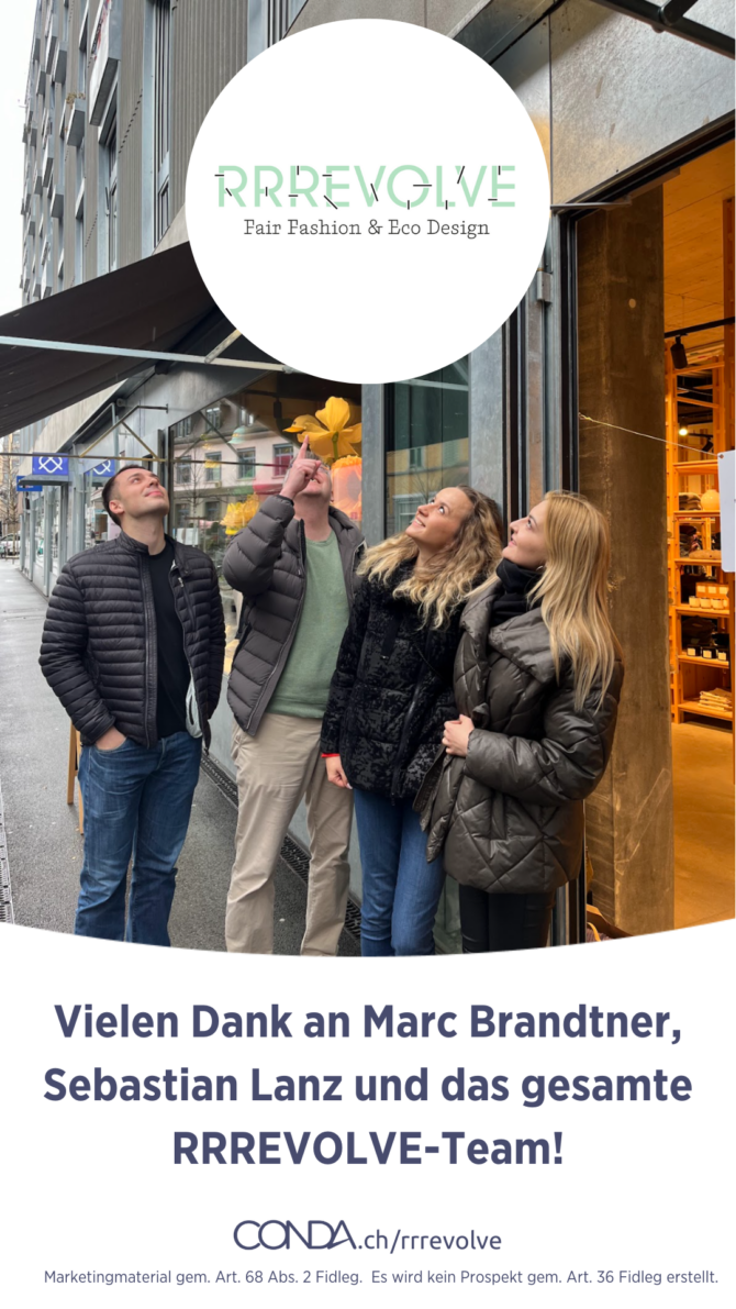 Der Fair-Fashion-Pionier RREVOLVE führt derzeit seine Crowdinvesting-Kampagne auf Conda.ch durch und fast unser gesamtes Conda.ch-Team hat vor ein paar Tagen dem RRREVOLVE-Laden in Zürich einen Besuch abgestattet (exklusiv ausserhalb der Öffnungszeiten – wir lieben unseren Job 😉). Für uns alle eine grosse und sehr angenehme Überraschung, wie hell, ansprechend und modern das Geschäft eingerichtet ist.