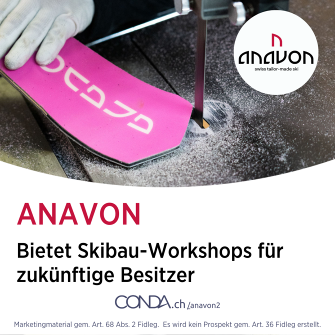 Die Premium-Ski-Manufaktur Anavon aus Disentis, die zurzeit eine Crowdinvesting-Kampagne auf conda.ch durchführt, ermöglicht dem zukünftigen Besitzer, seine Ski selbst zu bauen. Die 1- oder 2-tägigen Skibau-Workshops sind für Anavon eine Möglichkeit, die Markenbindung zu erhöhen und dem Besitzer eine einmalige Chance zu geben, Einblicke in ein komplexes Handwerk zu bekommen. Das Motto des Workshops ist: