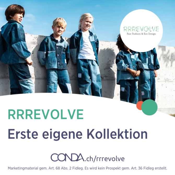 Der Fair-Fashion-Pionier der Schweiz – RRREVOLVE – führt auf conda.ch derzeit seine Crowdinvesting-Kampagne durch und Du hast die Chance, dem Unternehmen als Investor dabei zu helfen, als Hersteller von fairer Kleidung aufzutreten. RRREVOLVE hat letztes Jahr seine erste eigene Kleidungskollektion entwickelt und ist so das erste Mal als Hersteller mit eigenem Logo auf der Kleidung