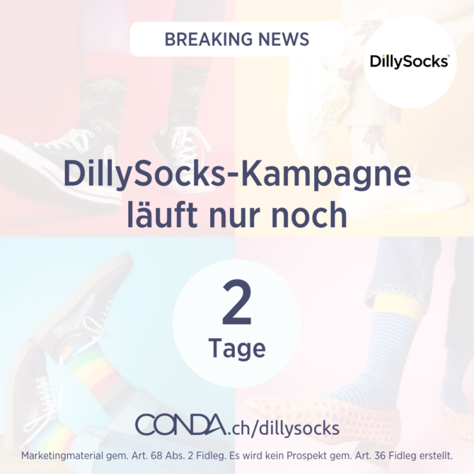 Auf conda.ch ist die DillySocks-Kampagne bereits einige Wochen zur Investition freigeschaltet und es sind 195 Investoren dabei, die zusammen über 210’000 CHF bereitstellen. Das Fundingziel von 250’000 CHF ist also in greifbarer Nähe und noch hast Du die Chance, in den letzten beiden Tagen der Kampagne in DillySocks zu investieren. Das Unternehmen ist bereits seit