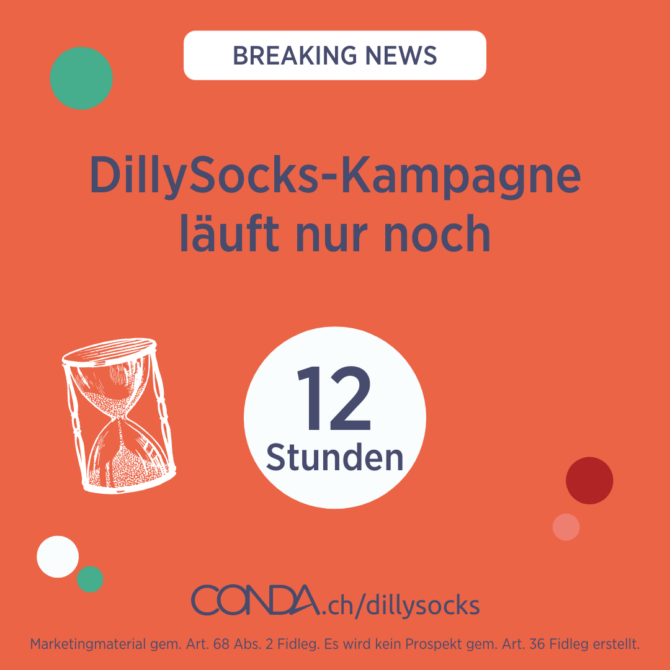 Die DillySocks-Kampagne auf conda.ch befindet sich im Endspurt und läuft nur noch 12 Stunden lang! Gestern wurde die 200-Investoren-Marke geknackt und es sind inzwischen 214’000 CHF eingeworben worden. Wird das Fundingziel von 250’000 CHF noch erreicht? Du kannst dabei mit Deiner Investition helfen. DillySocks ist bereits seit 10 Jahren am Markt und plant nun mit