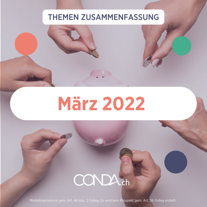 Was geschah im März bei CONDA.ch? Zuallererst dürfen wir feierlich verkünden, dass während unserer Spendenaktion für die Ukraine 203 Investitionen über CONDA.ch getätigt wurden. Das heisst, dass wir über CHF 1’670 an verschiedene Hilfsorganisationen, die in der Ukraine aktiv sind, spenden können.