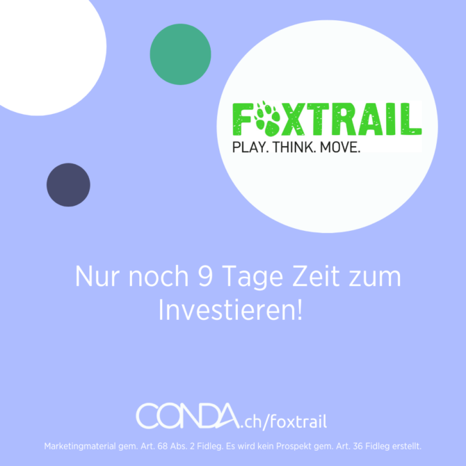 Die Crowdinvesting-Kampagne von Foxtrail auf conda.ch hat bereits über 200 Investoren überzeugt und konnte 569’000 CHF einwerben. Das Unternehmen hinter der Kampagne, die Central Outdoor Holding AG aus Luzern, das mit seinen Apps und Abenteuer-Pfaden für aktive Menschen expandieren möchte, bietet noch 9 Tage lang die Möglichkeit, Teilinhaber des Unternehmens zu werden. Mit Deiner Investition