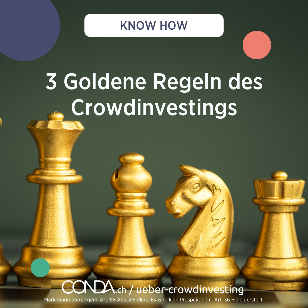 Das gilt grundsätzlich für alle Formen von Anlagen. Investiere nie Dein gesamtes Kapital in nur ein einziges Anlageprodukt. Nutze den grossen Vorteil, dass Du beim Crowdinvesting bereits mit kleinen Mindestbeträgen in ein Projekt einsteigen kannst.