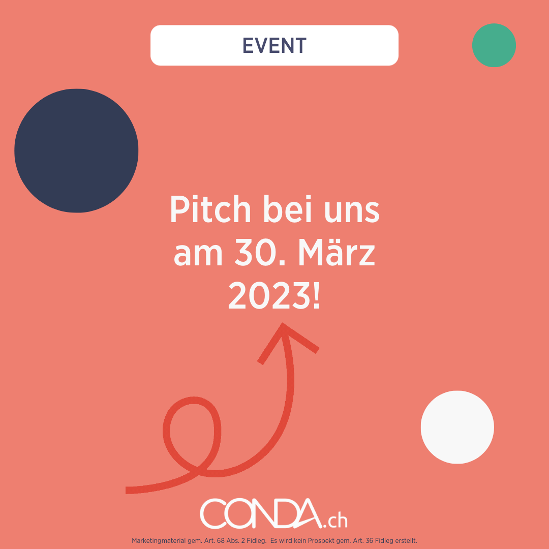 Bei unserem Swiss Start-Up Funding Table am 30.03.2023 geben wir 5 Start-Ups die einmalige Chance sich einem Publikum aus Investoren von conda.ch zu präsentieren. 😎