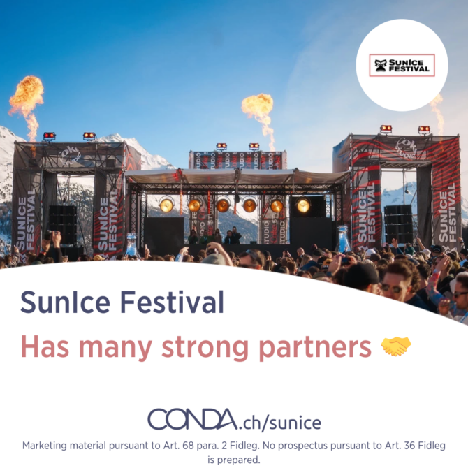 The last two weeks of the crowd-investing campaign on conda.ch are running for the ‘SunIce Festival’. Currently, the sum stands at just under 250,000 CHF from 110 investors. The SunIce Festival has quickly established numerous partnerships with nationally and internationally operating companies, all of which are interested in the reach and relevance of the SunIce