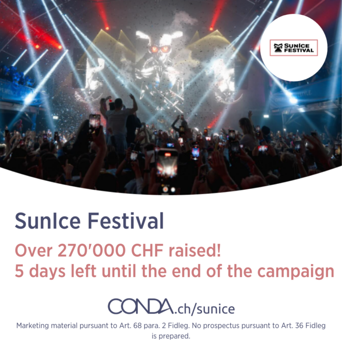The SunIce Festival has once again achieved impressive numbers! 📈 The crowdinvesting campaign is growing exponentially. The rapidly expanding music festival in the mountains has already attracted 118 investors and raised 278’340 CHF – currently 557% funded, setting a new record! Only 5 days remain until the campaign ends, and until September 7th, you have