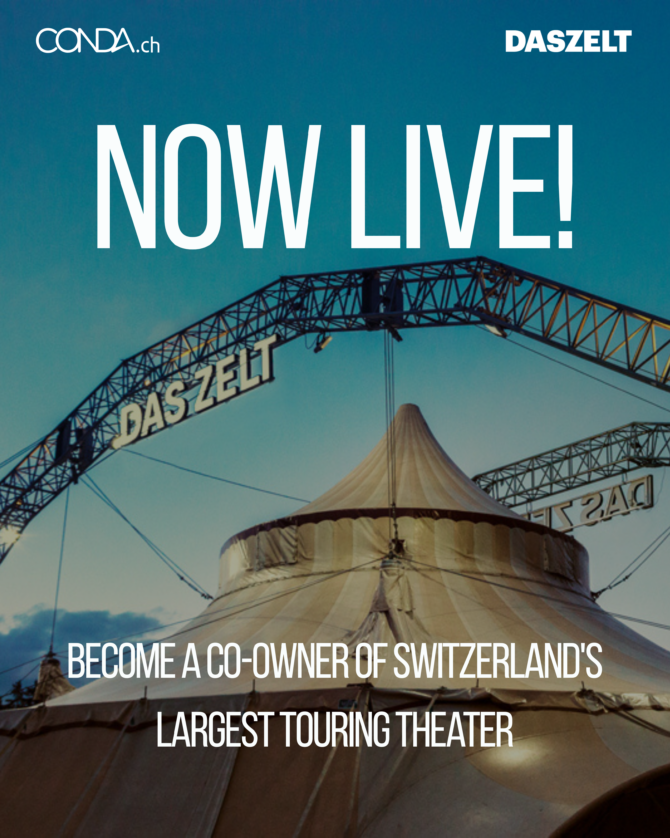 For nearly 25 years, DAS ZELT has been bringing Switzerland together – city by city, generation by generation. Now, the country’s largest touring theatre is writing a new chapter, and investors can be part of it. The current funding round for DAS ZELT is now open via the crowd investing platform CONDA.ch. Those who invest