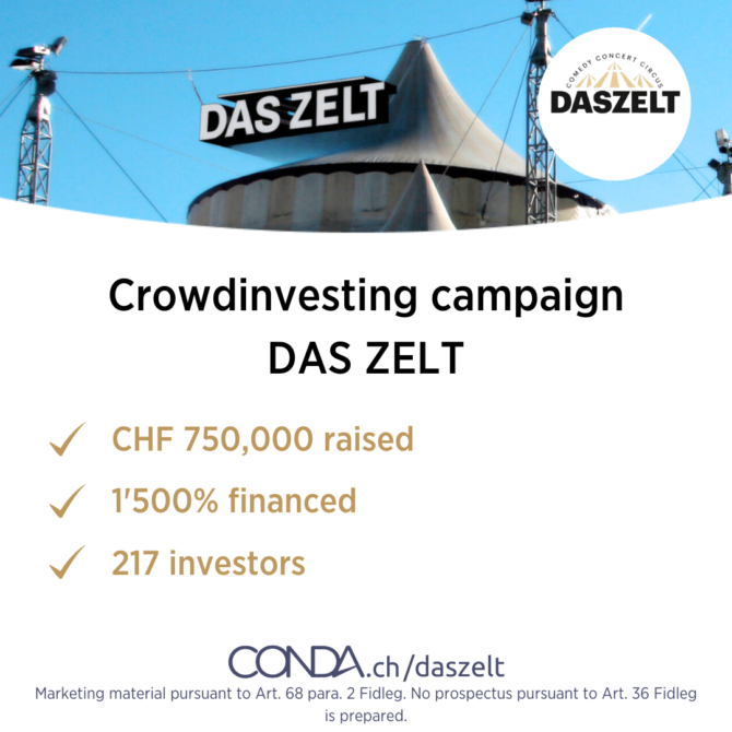 At the start of the week on Monday, the crowd-investing campaign for the SunIce Festival reached the 100-investor milestone on conda.ch. We congratulate the team on this success. Currently, 102 investors have provided almost CHF 225,000, which is 450% of the funding threshold. The goal is CHF 500,000, which should be reached by 7 September.