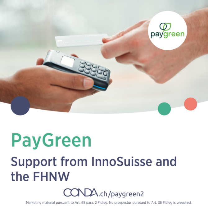 PayGreen is currently running its crowdinvesting campaign on conda.ch. The company has developed a payment solution that contributes to CO₂ reduction without greenwashing. The idea has been supported by Innosuisse and the University of Applied Sciences and Arts Northwestern Switzerland (FHNW) since the company was founded. The innovative sustainable business model has already won over