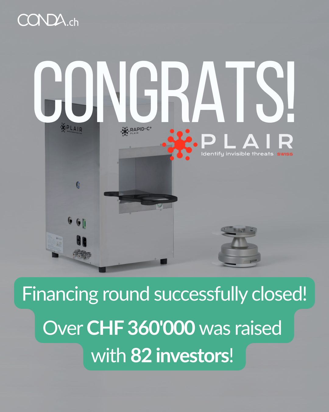 A successful premiere! We have successfully financed the first campaign in French-speaking Switzerland with Plair. Congratulations to you, Plair— you have made history. Now it’s time to move forward: more startups, more opportunities, more French-speaking Switzerland.