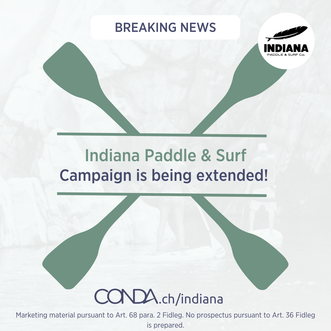 White Wave AG and its Indiana Paddle & Surf brand are riding the wave of success with their crowdinvesting campaign on conda.ch, as can be seen from the surprising number of investors who have joined in the last few days before the official end of the campaign tomorrow. The company has therefore decided to extend the campaign in order to allow as many interested people as possible to participate in the company’s success and growth.