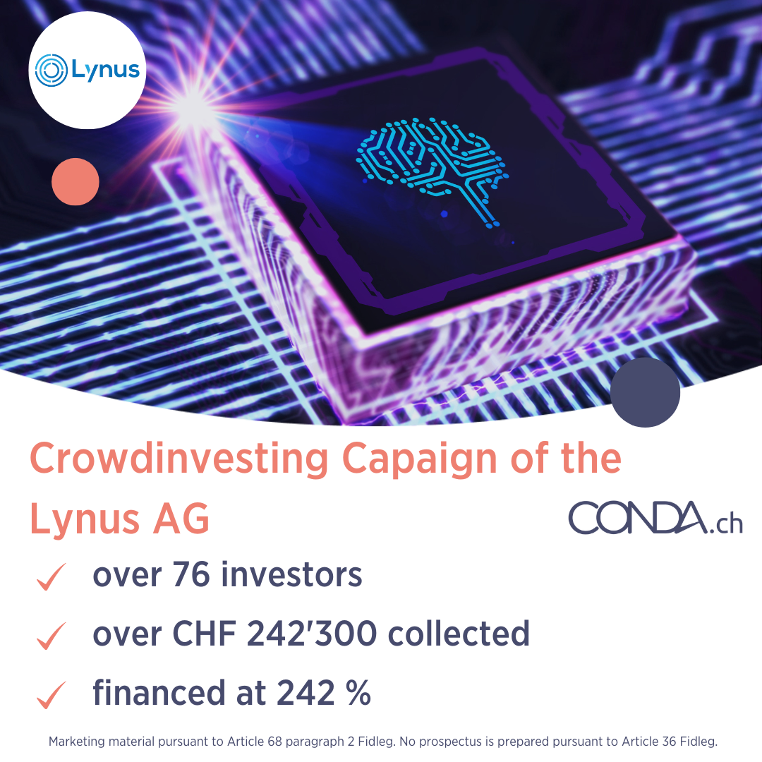 We are happy together with Lynus AG and proud that we could support them in their funding! CONDA.ch would like to thank you for the trust you have placed in us and wish you all the best and continued success! 🙌 And maybe we may meet again for a next financing round 🙋🏼‍♂️