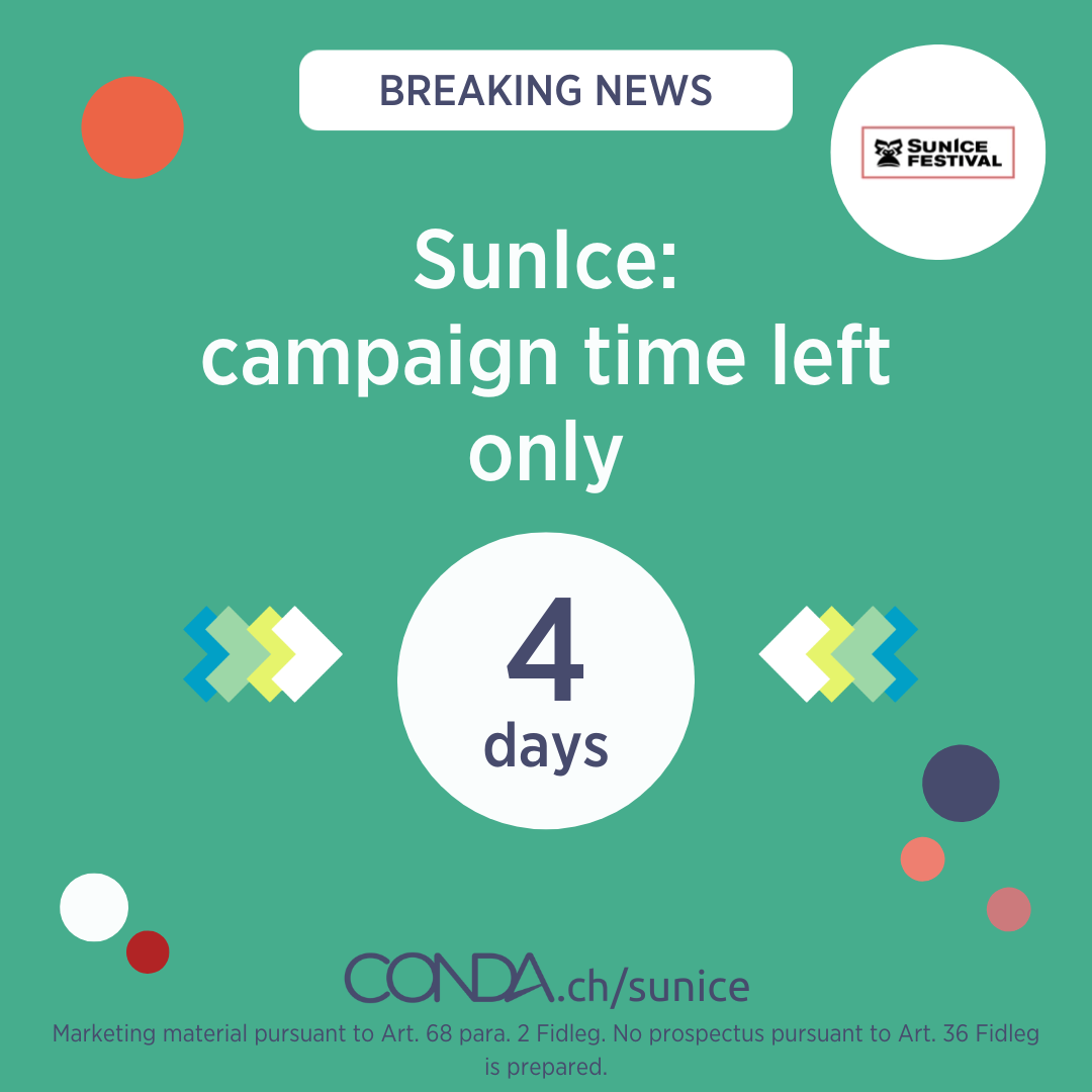 👉 SunIce’s crowdinvesting campaign on conda.ch only runs for 4 more days, until 30.09.2024 at 23:59 pm. Currently, 155 investors have already participated with almost 381’040 CHF – but there’s still more to come! 💥