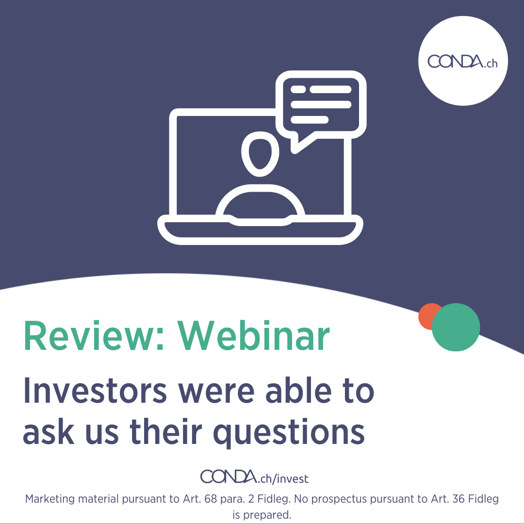 In order to give other investors the opportunity to become part of the CONDA.ch family and to clear up any remaining questions or uncertainties, we held a webinar on 6 June at 4:30 pm.