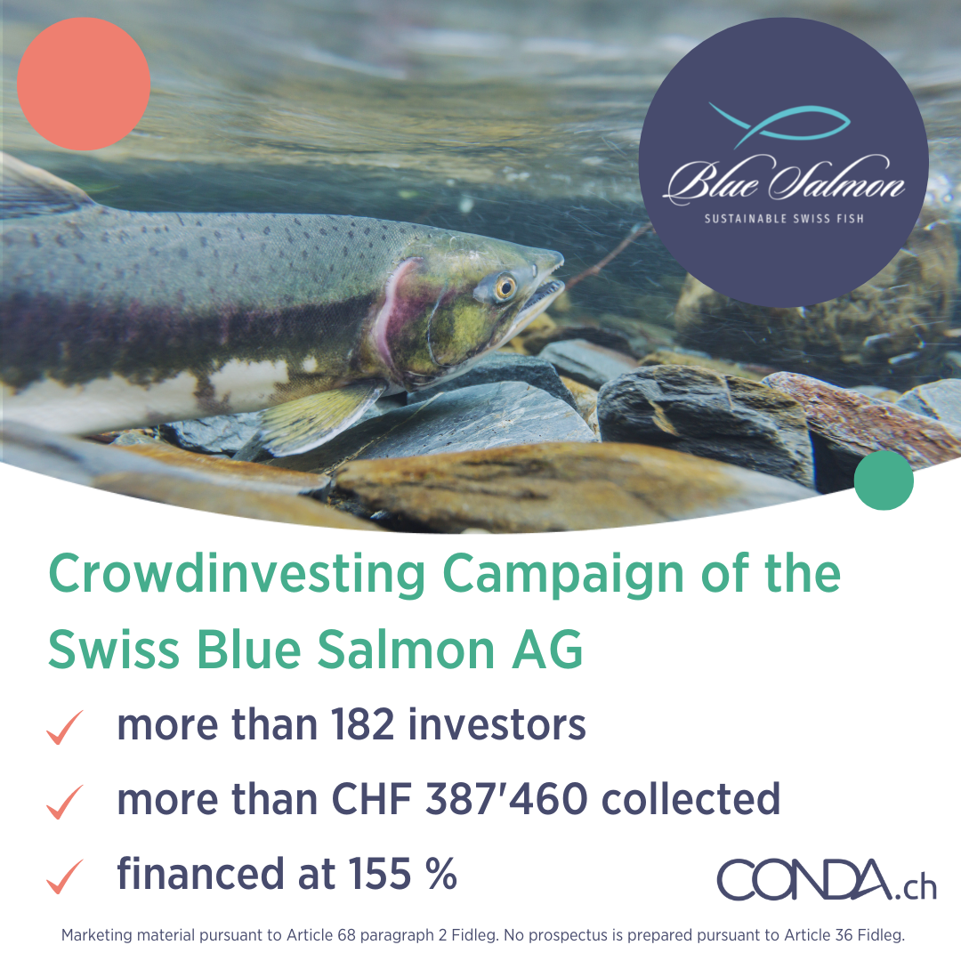 We would also like to thank 20 Minuten again, as they published a great article about Swiss Blue Salmon. We are more than happy that we could support Swiss Blue Salmon AG with their funding! CONDA.ch would like to thank you for the trust you have placed in us and wish you all the best and continued success! 🙌