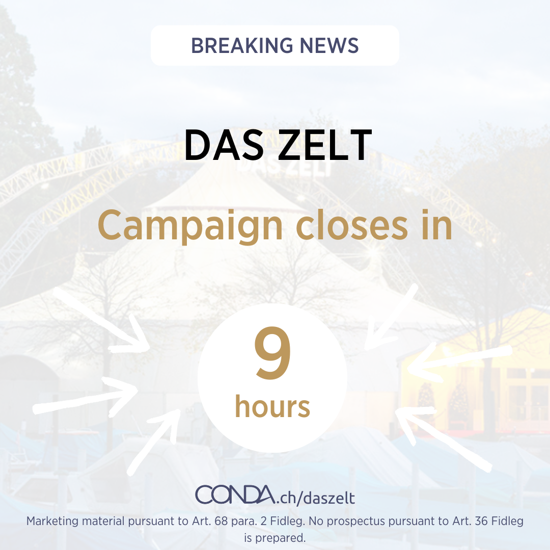 Das Zelt’s crowdinvesting campaign on conda.ch is on the home straight – the campaign has only 9 hours left to run!
