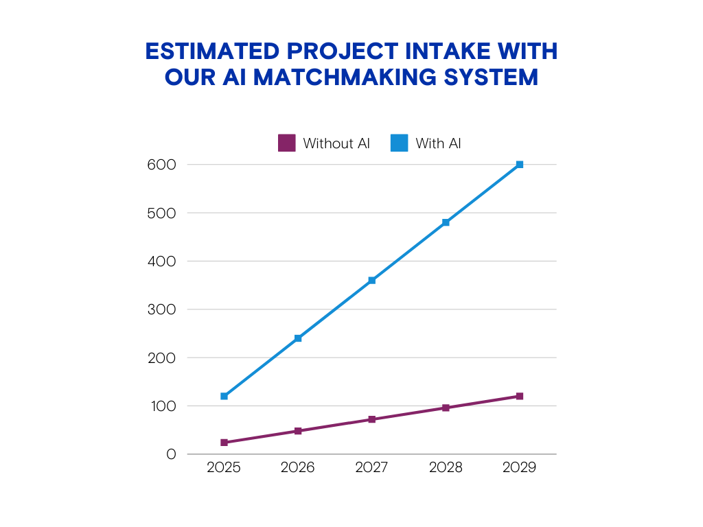 đ Result: Weâve tripled our project intake from 1 project per month to 2-3 projects and aim to handle 10 projects per month by the end of the year. The matching is done in seconds, faster and more accurate than before.