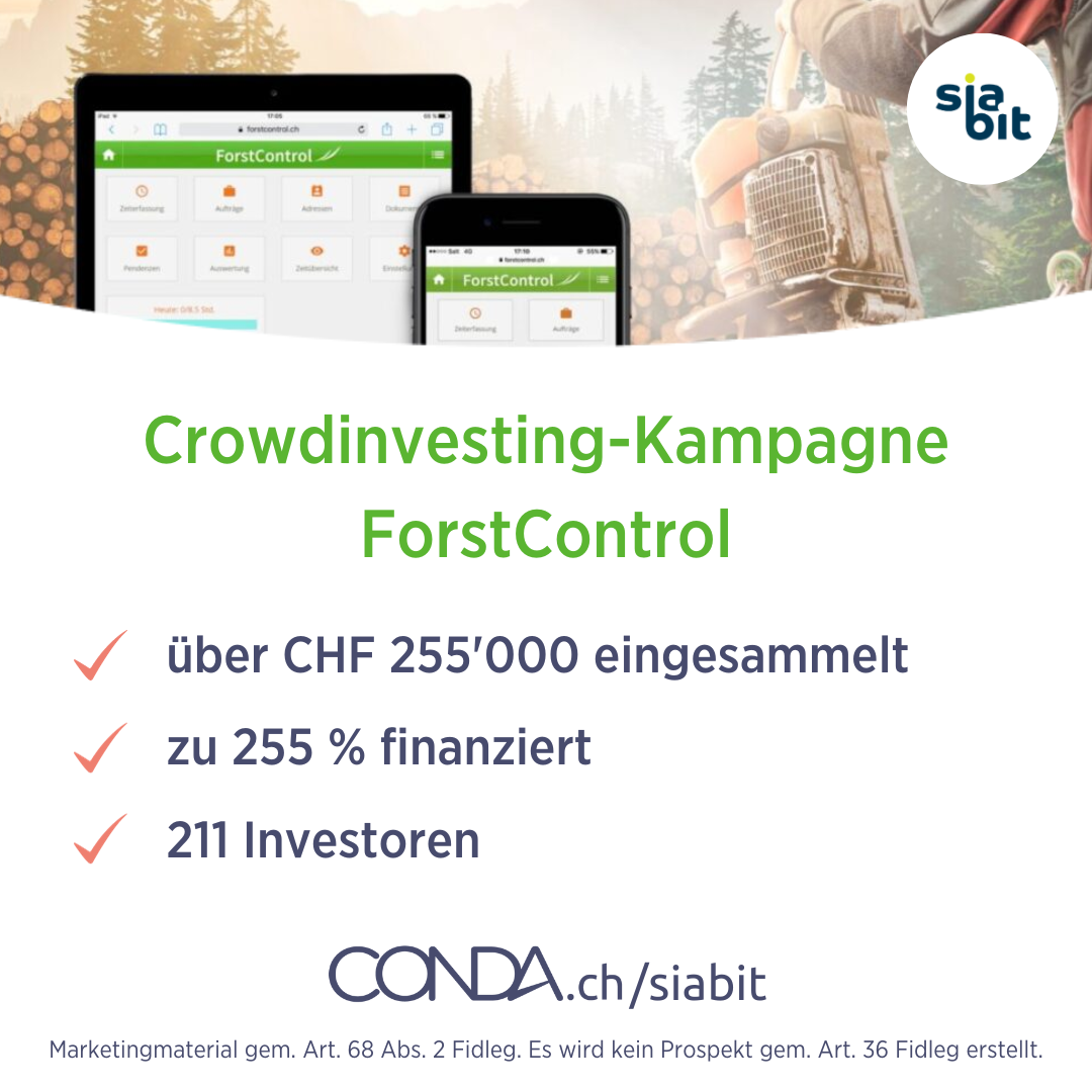 Die Crowdinvesting-Kampagne der App ForstControl von der siabit AG auf conda.ch ist erfolgreich beendet worden.