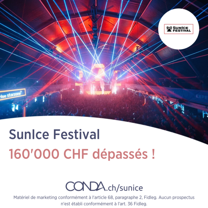 Depuis la semaine dernière, je suis disponible sur conda.ch pour la campagne de crowdinvesting du festival SunIce. Le festival se décrit comme le « Coachella des montagnes » et a réussi à enthousiasmer 20 000 invités lors de sa dernière édition. L’équipe voit un énorme potentiel de croissance et souhaite prendre son envol avec toi en tant