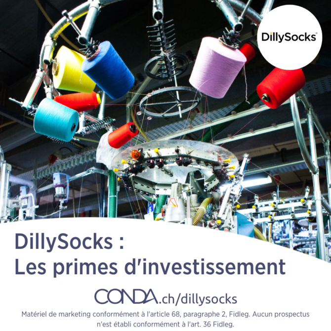 Sur conda.ch, la campagne DillySocks est déjà ouverte à l’investissement depuis quelques semaines et 195 investisseurs y participent, fournissant ensemble plus de 210’000 CHF. L’objectif de financement de 250 000 CHF est donc à portée de main et tu as encore la possibilité d’investir dans DillySocks au cours des deux derniers jours de la campagne.