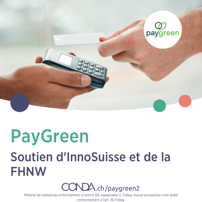 Sur conda.ch, PayGreen mène actuellement sa campagne de crowdinvesting. L’entreprise a développé une solution de paiement qui contribue à la réduction de CO₂ sans faire de greenwashing. L’idée est soutenue dès la création de l’entreprise par Innosuisse et la Fachhochschule Nordwestschweiz (FHNW). Le modèle d’entreprise durable innovant a déjà convaincu de nombreuses entreprises et organisations.
