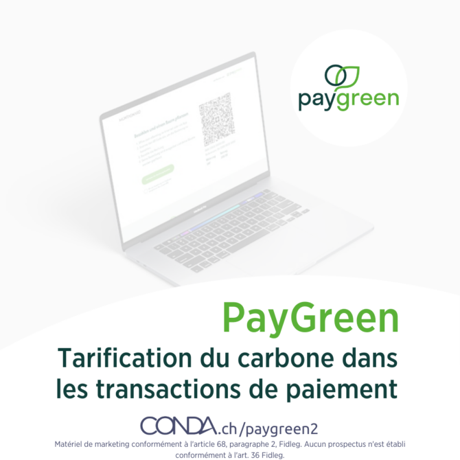 Sur conda.ch, la campagne de crowdinvesting de PayGreen est actuellement en cours. L’entreprise développe une solution de paiement en ligne qui incite les entreprises utilisant cette solution de paiement à réduire leur empreinte carbone. PayGreen a réalisé, grâce à une simulation du MIT (Massachusetts Institute of Technology), qu’une tarification du carbone a le plus fort