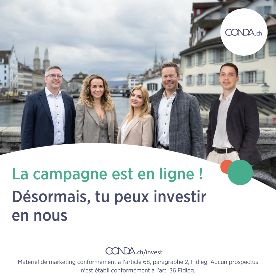 Si tu souhaites investir dans notre plateforme et notre vision, tu trouveras toutes les informations sur la page de la campagne : conda.ch/invest