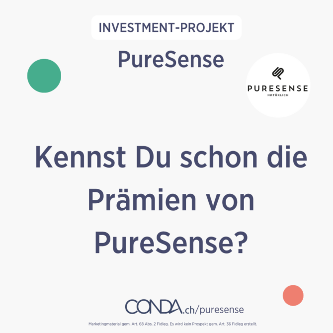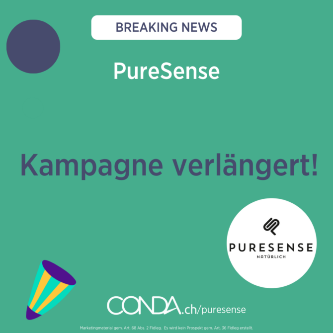 Wir haben tolle Neuigkeiten für Dich! PureSense hat seine Kampagne bis Ende April verlängert! Wir freuen uns, Dir weiterhin die Möglichkeit geben zu können, in dieses erfolgreiche Start-Up zu investieren. Du kannst unter 👉 conda.ch/puresense mehr Informationen über PureSense erfahren und direkt investieren!