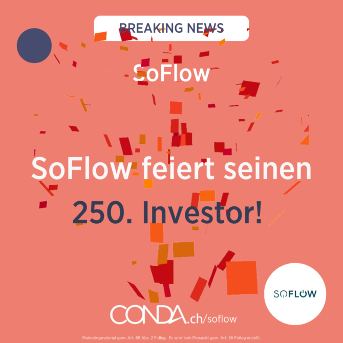 Wahnsinn! SoFlow feiert mittlerweile seinen 350. Investor. Wir sind mehr als begeistert von dem, was wir in der zweiten Runde unserer gemeinsamen Kampagne schon erreicht haben! 🎉 Bei diesem Tempo wird es nicht mehr lange dauern, bis wir das Fundingziel von CHF 1’000’000 knacken. 👀 Profitiere jetzt von SoFlow’s unglaublichen Erfolg unter 👉 conda.ch/soflow.