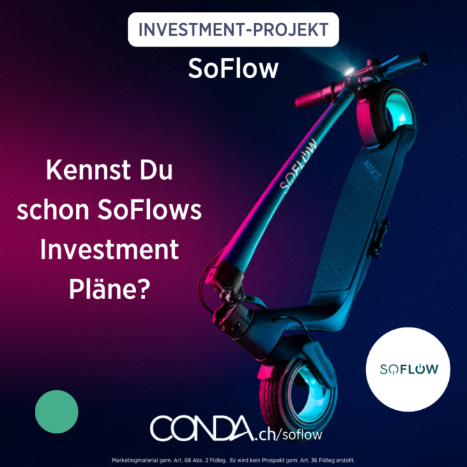 SoFlow’s Kampagne bei conda.ch endet bald – entdecke welche Prämien Du jetzt noch für Deine Investition erhältst!👀 ✅ Platin: CHF 12’168 Du erhältst einen liftetime 25 % Rabattcode im SoFlow Onlinestore für maximal 3 Bestellungen pro Jahre & einen SO3 Gen 2 E-Scooter geschenkt. 🛴 ✅ Gold: CHF 8’112  Für diese Investitionen gewährt Dir SoFlow