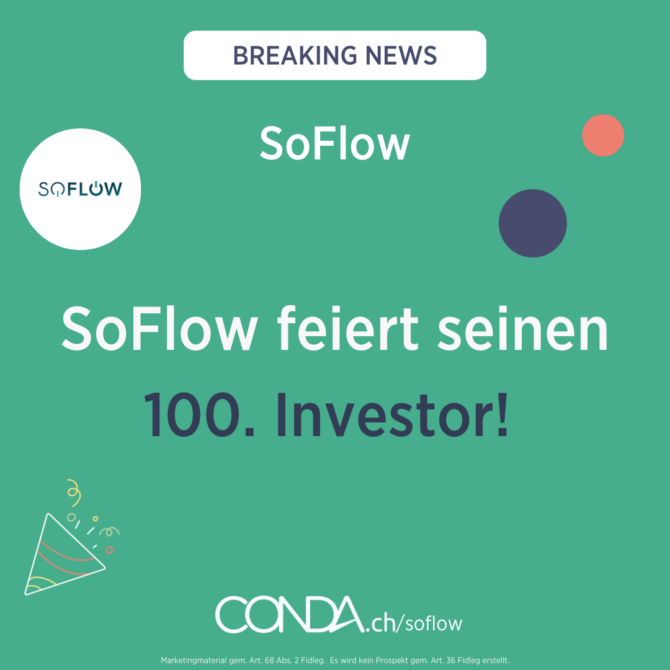 WOW! SoFlow geht durch die Decke: Wir können Soflow schon nach so kurzer Zeit zu ihrem 50. Investor gratulieren! Aktuell wurden schon über CHF 126’000 eingesammelt. Sei auch Du dabei und sichere Dir Anteile an diesem innovativen Unternehmen unter 👉 conda.ch/soflow