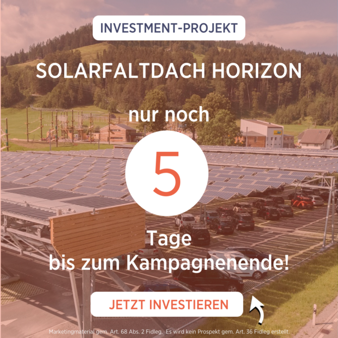 Wow! Wir sind absolut überwältigt: Unser Investment-Projekt das „Solarfaltdach Horizon“ von dhp technology AG hat bereits das Funding Ziel von CHF 1 Mio. erreicht – und das nach (NUR!) 12 Tagen online!