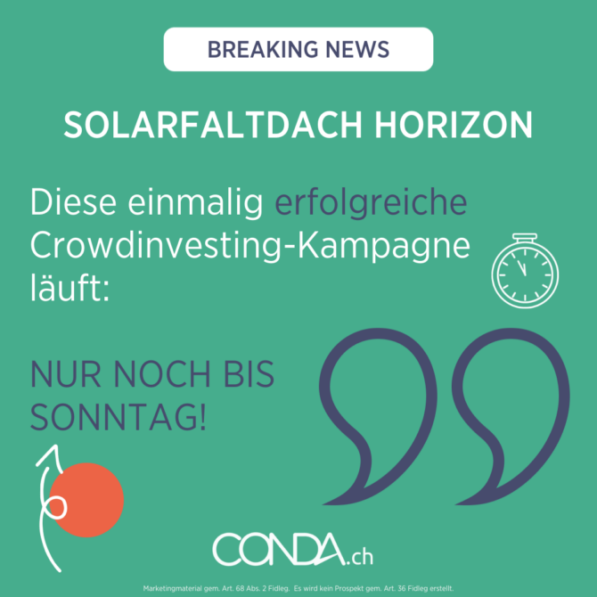NUR NOCH BIS SONNTAG! Bis dann hast Du noch Zeit, ein Teil des Erfolges von Solarfaltdach Horizon zu werden!