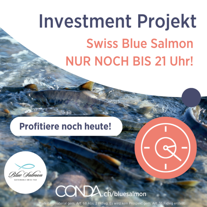 NUR NOCH BIS HEUTE ABEND! Bis heute um 21:00 Uhr hast Du noch Zeit, ein Teil des Erfolges von Swiss Blue Salmon zu werden! Lass Dir diese Chance nicht entgehen und profitiere von diesem zukunftsträchtigen Projekt mit einer Renditeerwartung von 25 %!